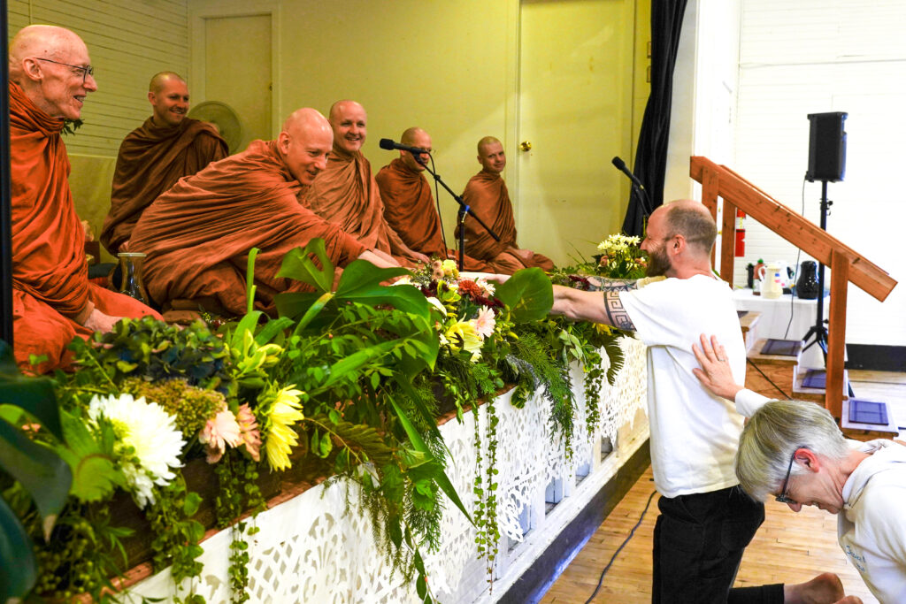 Throughout the weekend, groups of laypeople and monastics gathered near the slideshow that showcased a wide array of moments at the Pacific Hermitage over the years, dating back to its inception. There was a palpable delight in seeing friends and noting the faces (and the reality of aging!) of the lay supporters and monastics who have passed through the Hermitage over the years. Ajahn Caganando shared many memories of his five years spent at the Hermitage in the early days. It was such a gift for everyone present to experience the beautiful communion among laypeople and monastics – the Dhamma-family we create together with the bonds of mutual support, care, learning, and being seen.
