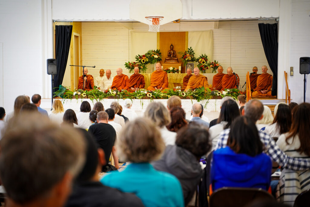 This year, the Saturday meal for the monastics was hosted at the event site. This created a continuity of caga – the attendees felt the radiance of their generosity flow into the afternoon of sitting and walking meditation. A guided meditation by Ajahn Kovilo asked us to explore a felt sense of mettā in the body, asking questions like, “Where is mettā in the body? In what way is mettā breathing?”